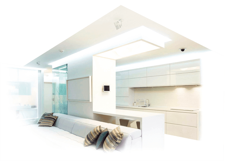 Светодиодная подсветка – это то, что делает натяжной потолок парящим. Она скрывает стыки между натяжным полотном и стеной. Правильно подобранная подсветка может визуально изменить восприятие размеров помещения, и подчеркнуть индивидуальность интерьера. Светильники могут быть монохромными (белыми, желтыми, красными, зелеными) или RGB типа, с меняющейся цветовой палитрой. Регулируется цвет и интенсивность подсветки при помощи пульта управления.